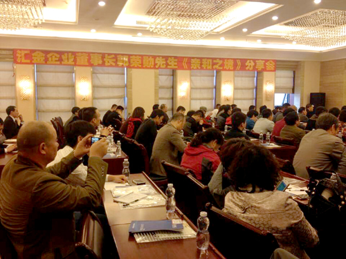 2014年12月2日,河南汇金冶金科技有限公司《亲和之境》研讨会暨客户交流答谢会于广州蓝海大厦圆满落幕。会上,河南汇金冶金科技有限公司董事长郭荣勋为客户分享了人生真经《亲和之境》,并对“如何成就企业与人生的不败”做出了重点的研讨,出席的来宾纷纷表示聆听了郭荣勋《亲和之境》的演讲感觉受益匪浅。